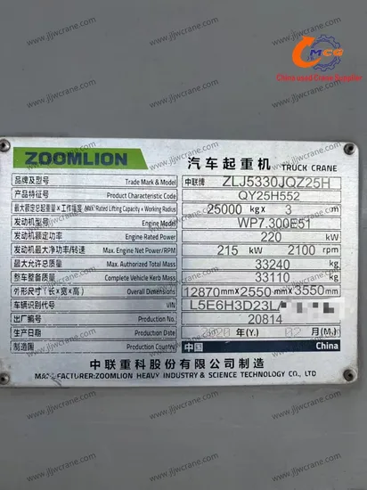 اعلی معیار کے 2020 زوملین 25 ٹن استعمال شدہ کرین - عمدہ حالت